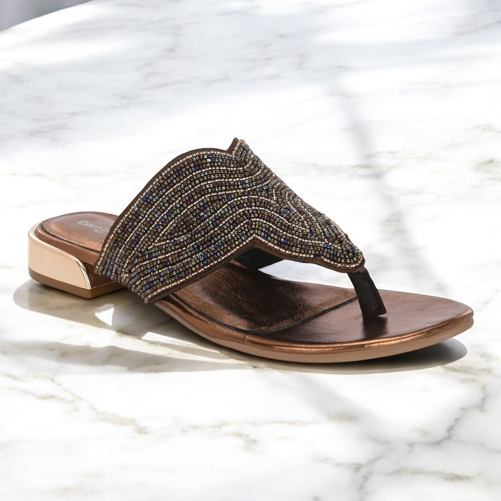 CARLO ROMANO BY WASAN BRONZE COLOR PREMIUM STYLISH WOMEN'S EMBROIDERY SLIPPER